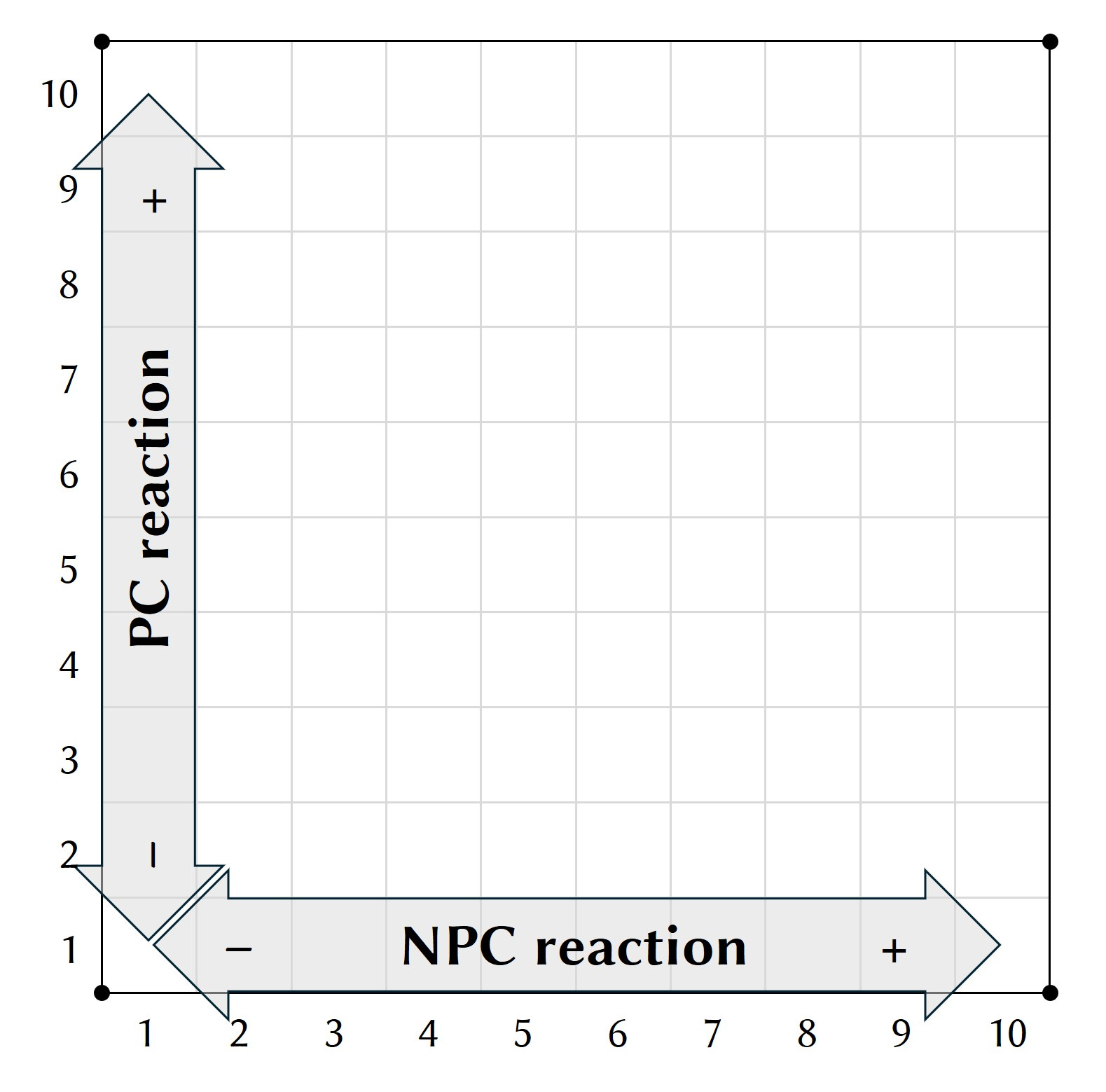 On the Y-axis the player declares the PC’s starting reaction, same 1–10 scale.