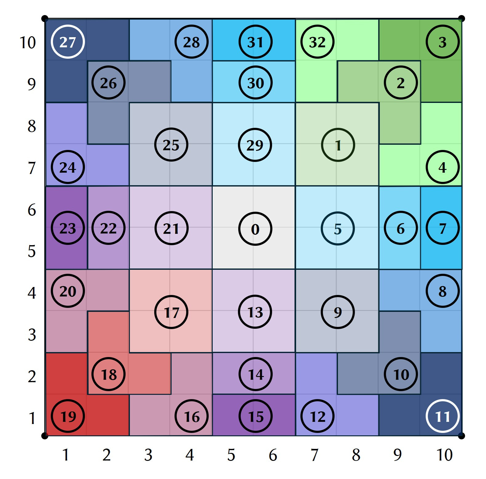 The fixed scores generate a position in a specific area according to the keyed reaction graph and the keyed reaction table below.